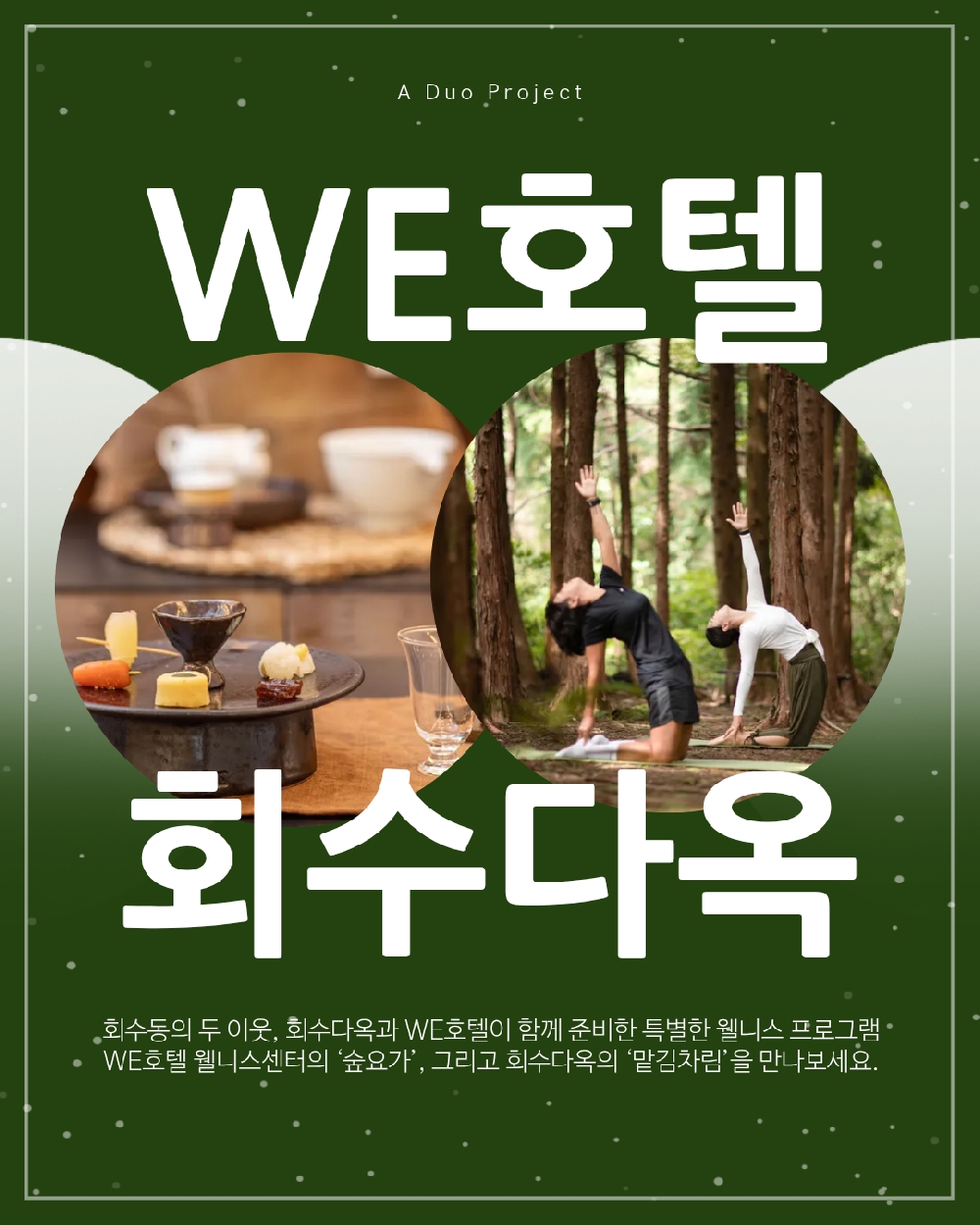 □ 아울러 △WE호텔의 숲 요가 프로그램 △회수다옥의 티 맡김 차림을 연계한 제주 여행주간 특별 듀오 프로그램은 50% 할인된 금액으로 이용이 가능하다.